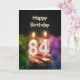 Um bolo de aniversário com velas. As velas são compostas pelo número 84, por 84 anos. Um cartão de aniversário adequado para todos.