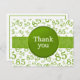 The modern numeric design is a green and white random number pattern with a green milestone number 85 repeated in varied sizes and angles over a white background. There is a circle in the center for your thank-you text.