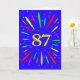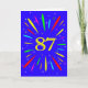 Um cartão de aniversário explosivo de 87 anos! Que maneira maravilhosa de enviar cartões de aniversários. O número 87 em amarelo brilhante com uma explosão de cores brilhantes e estrelas.