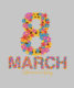 A beautiful and colorful design featuring the number 8 and the word "MARCH" made entirely of vibrant flowers in shades of pink, blue, yellow, and red. Below, the text "Women's Day" is elegantly written in cursive. This floral tribute represents love, strength, and appreciation for women on International Women’s Day.