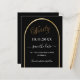A Save the Date card for a 90 festa de aniversário. Um fundo preto, decorado com um arco de ouro falso. Personalize e adicione uma data e seu nome. O texto: Noventa e Salvar a Data é escrito com um script de estilo com letra de tendência grande. 1 folha = 1 salve a data da borda impressa em borda.