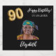 Um fundo preto clássico decorado. Personalize e adicione uma data, um nome e uma foto. Número de idade escrito com uma fonte de estilo de balão.