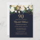 90 Birthday Elegant Marinho Dourado Convite Floral