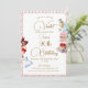 Um convite temático Alice no País das Maravilhas proclamando design de festa de aniversário de "chá e tartes". Quadro de cheques cor-de-rosa e fundo floral com Alice no mundo das Maravilhas, design de aniversário de 90 Whimsical e elegante. Altere facilmente as informações para o seu próprio design personalizado. Alterar idade e nome. Remova a palavra 'surpresa', se precisar. Pinks, blues e vermelhos.