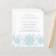 Flocos de neve de cor azul muito elegantes criam uma bonito borda ao longo do final deste convite de aniversário para adultos. A design moderna e minimalista tem uma sensação aberta e arejada. A estética contemporânea apelará a pessoas de todas as idades.