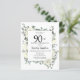Convite de aniversário elegante apresenta um quadro botânico de flores brancas e folhas verdes profundas. O nome da pessoa de aniversário é escrito em um texto tradicional. Todo o texto pode ser facilmente editado para criar apenas o tom comemorativo correto.