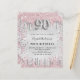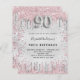 Um convite moderno, na moda e glamouroso para uma festa de aniversário 90. Um fundo de aspecto fino prateado, decorado com pó brilhante de prata rosa e falso. Personalize e adicione o seu nome e detalhes da festa. O número 90 é escrito com uma fonte de estilo de balão, script.
