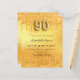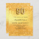 Um convite moderno, na moda e glamouroso para uma festa de aniversário 90. Um fundo metálico de ouro falso com pingos de brilho falso, aparência de pingar tinta. O nome é escrito com um moderno estilo escrito à mão. Personalize e adicione os detalhes da sua festa. O número 90 é escrito com uma fonte de estilo de balão, script.