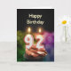 Um bolo de aniversário com velas. As velas são compostas pelo número 92, por 92 anos. Um cartão de aniversário adequado para todos.