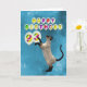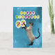 Um gato siamês brincalhão perseguindo balões. Um excelente para um amante de gatos enviar um cartão de aniversário.