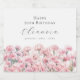 Perfect table decor for an January birthday party. Carnation is the birth flower for that month. It forms a pretty watercolor bottom border on this floral personalized label. The birthday guest of honor's name, age and birthdate are placed above it using elegant calligraphy and typography. All text is editable.