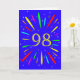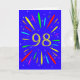 Um cartão de aniversário explosivo de 98 anos! Que maneira maravilhosa de enviar cartões de aniversários. O número 98 em amarelo brilhante com uma explosão de cores brilhantes e estrelas.