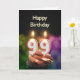 Um bolo de aniversário com velas. As velas são compostas pelo número 99, para um aniversário de 99 anos. Um cartão de aniversário adequado para todos.