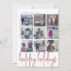 Design FRONT: Uma colagem de 9 fotos em uma grade simples para destacar muitas fotos do ano passado. A grade de fotos está fora do centro com os nomes familiares em volta da colagem como uma borda. Uma busca moderna por um cartão com fotos de feriado com sotaques coloridos de rosa e "Felizes Feriados" em uma fonte de script manuscrita funk. O fundo é branco. Design de trás: o design de trás inclui uma cor de ouro rosa com córtons finos e modernos. Você pode mudar essa cor na área de design avançado.