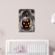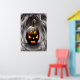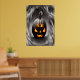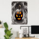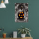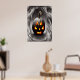 Uma abóbora negra assustadora, sozinha na poeira negra e cinza. Esta é uma arte de Halloween gerada por IA.