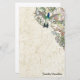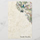As belas artes botânicas da aguarela do vintage lindo de Nouveau da arte de flores do Hollyhock e bagas e videira da madressilva por Mucha, e um pássaro azul maravilhoso do colibri, sobre o falso papel handmade, estão nestes colibri floral artigos de papelaria personalizados. As imagens são dominio público devido aos direitos reservados expirados. A colagem é por mim.