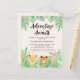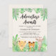 Convide a família e os amigos para o seu chá de fraldas neutro em termos de gênero com este convite bonito. Apresenta uma aquarela desenhada manualmente de leão, girafa e filhotes de tigre com folhas de palma verdes e diz "Aventura Aguarda!" na tipografia rústica. Facilmente personalizável. Use a Ferramenta Design para alterar o tamanho, o estilo ou a cor do texto. À medida que criamos a nossa trabalho de arte, não encontraremos esta imagem exata de outros designers. Original Watercolor © Michele Davies.