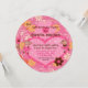 Um convite adorável do aniversário na forma circular redonda com lotes do rosa, dos corações, das flores, e da bailarina pequena monkeys com áreas que você pode facilmente adicionar todos seus específicos da festa de aniversário!