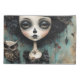 Uma linda boneca gótica e sua coruja de animais de estimação misturaram colagem de mídia pintando IA gerada