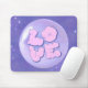A Bright Bold mouse pad with a purple love design