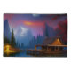 bela cabana enfiada numa enseada isolada rodeada por montanhas, banhada à lua. Arte gerada por Ai por minx267