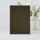 A Caça é Sobre a Caça à Camo, Cartões RSVP de Casamento — cada RSVP apresenta um tema de casamento de camo de caça que apresenta uma impressão de camuflagem de caça de galhos, folhas, latidos e mais sobre um fundo castanho esfregado. A parte superior apresenta uma banda dourada e verde com as palavras "The Hunt is Over" (A Caça acabou). Esses cartões RSVP de casamento estão configurados para estoque básico de cartão de alta qualidade; no entanto, você pode mudar o estoque para linho, feltro (gravado), reciclado e várias sombras metálicas, se você preferir com o número 2 (escolha seu estilo, tamanho e tipo de papel) abaixo do botão de adição laranja ao carrinho. Uma lista dos custos adicionais de uma carteira de cartões mais antiga é apresentada também sob essa opção. Cada placa RSVP vem com um envelope branco equipado. Dicas para personalizar suas placas RSVP de Casamento Este estilo permite um RSVP de estilo buffet, se você precisar de opções jantadas, role para baixo para encontrar os produtos disponíveis. Clique no botão personalizar abaixo da demonstração de cartão RSVP de casamento acima para alterar a fonte, a coloração de texto ou o tamanho do que você preferir. Se você estiver satisfeito com o estilo da fonte, a cor do texto e os tamanhos, poderá usar o recurso de personalização à direita da demonstração para simplesmente mudar as informações da demonstração para os detalhes pessoais do seu casamento. Basta verificar a demonstração depois de alterar os detalhes (a demonstração será automaticamente alterada depois que você fizer qualquer alteração nas cores de texto, tamanho ou fonte). A demonstração fornecerá uma prova do seu convite após o fazer das mudanças. Clique no botão de aumento acima da demonstração RSVP para obter uma prova de exibição de cheio. Você também pode clicar em cada imagem (frontal e traseira) para sair de cada lado após o fazer das alterações. Outra dica é clicar no botão design acima da demonstração para aproximar mais detalhes e obter uma melhor visualização das cores e decor do design. Certifique-se de verificar cada lado da placa antes de adicionar ao carrinho para fazer check-out seguindo as dicas acima.