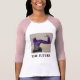 Camiseta feminina mangas raglan 3/4 da Bella+Canvas, Branco/Cor-de-rosa, Adulto P
