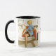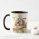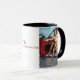 Meninas de pintura e automóveis clássicos; um jogo feito no céu do carro. Essa caneca preta e branca apresenta duas pinups de vintage e texto vermelho (no centro).