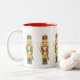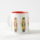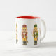 Envoltório vermelho e verde dos nutcrackers em torno desta caneca para um presente de época natalícia festivo. Ilustração por Mitzi Sato-Wiuff para o estúdio Miyabi.