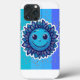 Esta capa de telefone vibrante apresenta uma face sorridente azul cobalto com detalhes simples como diamante, adornada com designs holográficas intrincadas que refletem cores do arco-íris. Ele se destaca contra um fundo branco puro, misturando alegria e estilo moderno sem falhas.