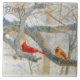 a mated pair of Northern Cardinals perched on a snowy branch in the winter; my photograph converted to a watercolor style using AI