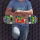 Um skate wicksuamente incrível projetado por Roberto Regan! Perfeito para qualquer fã de pintura de grafite/spray, cultura urbana e patinagem. Possui um legal fundo de parede de tijolos com uma matriz de texto e imagens de grafite de ações combinadas numa incrível colagem personalizada. Aproveite!