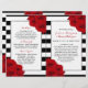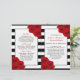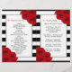 A coleção de luxo moderna de chic apresenta um histórico clássico de listras brancas e pretas, acentuado com belas rosas vermelhas de rubi e uma falso moldura de folha de prata. Estes programas duplos são fáceis de personalizar e serão a ordem de serviço perfeita para qualquer casamento, chá de panela, festa de aniversário, celebração de noivados ou qualquer outra ocasião especial.