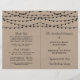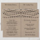 Simples, mas elegante, as luzes de cordas na coleção de casamento rustic Kraft é um design impressionante com luzes de cordas brancas adoráveis em um fundo de efeito Kraft, o que é perfeito para qualquer celebração de casamento rústico. Esses programas podem ser personalizados para sua ocasião especial e tornariam a ordem perfeita de serviço para seu casamento, chá de panela, festa de noivado, festa de aniversário e muitas outras ocasiões especiais. Adicione seu texto personalizado a este design usando as caixas "Editar este modelo design" no lado direito do item, ou clique no botão azul "Personalizar" para organizar o texto, alterar as fontes e cores e também adicionar informações ou imagens adicionais a este design. EXIBIR ITENS CORRESPONDENTES PARA ESTA COLEÇÃO