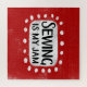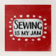 "Sewing Is My Jam" é um design de texto divertido com uma forma de sotaque branca cercado por pontos brancos texturizados.