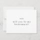 Estas serão as minhas cartas de dama de honra da Coleção Emelia... são perfeitas para um casamento minimalista. O design preto e branco apresenta uma tipografia moderna, não adorada, do boho, com um estilo minimalista único. Personalize a sua placa de solicitação de noiva com o nome da noiva e da dama de honra. Personalize a parte traseira do cartão com uma mensagem personalizada ou exclua esse texto para gravar uma mensagem manualmente.