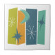 Faça uma declaração em seu projeto de unificação com este azulejo de cerâmica ousado da era atômica. Com seus retângulos, estrelas e bumerangue verdes, azuis, laranja, branco e turquesa, é certo que ganha algumas "uau"!