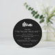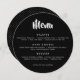 Um menu redondo customizável simples e moderno com a palavra "menu" no tipo da escova e em preto e branco clássico. Um suporte pontilhado acentua qualquer ajuste da mesa ou de lugar para uma ocasião formal. Estes menus redondos olham grandes em cada placa!