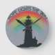"Hope Lights the Way" apresenta um farol e um arco-íris. O farol é um símbolo de esperança, e o arco-íris é um lembrete de que mesmo no período mais escuro, há sempre luz. O texto "Hope Lights the Way" está escrito em uma fonte cursiva em looping, ao redor do relógio. As mãos são pretas e o relógio está branco.O relógio que você me enviou tem um design de farol no centro, com as palavras "Luzes de esperança o caminho" escritas em um círculo ao seu redor. As mãos do relógio estão pretas e o tempo está ajustado para 3:15. O farol é branco com um teto vermelho e janelas pretas. Há um arco-íris saindo da base do farol.Hope acende o caminho" escrito em um círculo ao redor da borda. No centro da face do relógio está uma ilustração de um farol com um arco-íris saindo dele. O farol é um símbolo de esperança e orientação, e o arco-íris é um símbolo de promessa e novos começos. As mãos do relógio são pretas e parecem ser feitas de metal.