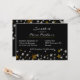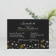 Convite de aniversário preto elegante do doce 16, com os gráficos do tom de prata e de estrelas glittery douradas, através da parte inferior. Personalize o texto branco para seu evento. Convite bonito para o dia muito especial da menina do aniversário.