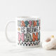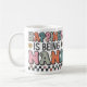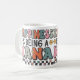 Uma caneca clássica personalizada com "Felicidade é ser uma nana" em tipografia mista colorida com pequenas flores e um coração de ambos os lados.
