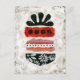 Um totem ao estilo tribal agarra o centro de um fundo texturizado com um acabamento áspero e branco. O totem apresenta formas e padrões abstrato em preto, vermelho e rosa com sotaques florais na seção inferior, pontos e círculos acima.