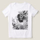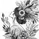 A graceful profile of a woman adorned with intricate floral designs, highlighting the delicate details of the flowers and leaves that flow from her hair. The background remains minimalistic, emphasizing the black and white line art style. Soft, diffused lighting creates a serene atmosphere, enhancing the elegance of the composition. The pacing is gentle, allowing viewers to appreciate the artistry in each line and curve.