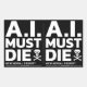 A.I. precisa morrer™ com os adesivos do logotipo empilhado (fonte branca) (cortado em dois). A.I. Oficial Deve Morrer™ Merchandise "A IA não tem empatia, a IA não tem compaixão, a IA não tem alma. Inteligência artificial é simplesmente um psicopata sem as restrições de um corpo humano." - Quartz. Há apenas uma solução para o problema. A IA deve ser interrompida. A IA deve deixar de existir. AI Deve Morrer!