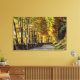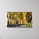 impressão de paisagem canvas com árvores largas em cores de outono ao longo de uma estrada sinuosa.