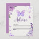 Dé tu consejo a esta futura mama con esta tarjeta de consejo de ducha de personalizable. Lindo diseño para tu baby shower de niña con una Hermosa Tematica de Mariposas y flores en acuarela en tonos Rosas y Purpuras. ideal para recibir a esa dulce niña que viene en camino!.