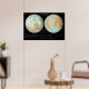 Este Poster único mostra impressionantes imagens artísticas dos lados frontal e traseiro da Lua com mais de 1300 nomes de crateras e outras características de superfície. A descrição mostra algumas informações gerais sobre a Lua e seus recursos mais importantes. São também apresentadas as posições e datas de todos os aterrissagens bem-sucedidos na lua por naves espaciais tripuladas e não tripuladas, incluindo os nomes dos astronautas para os pousos na lua tripulada. Os desembarques de Lua incluíram: Luna 9 Surveyor 1 Luna 13 Surveyor 3 Surveyor 5 Surveyor 6 Surveyor 7 Apollo 11 Apollo 12 Luna 16 Luna 17 Apollo 14 Apollo 15 Luna 20 Apollo 16 Luna 21 Luna 23 Luna 24 ang'e 3 Chang'e 4 Novo: Chang'e 5 versões com fundo preto e branco estão disponíveis. Mais informações estão disponíveis no site https://lunaposter.com