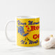 " Sua manhã acorda a chamada!!" Caneca de café da marca do galo do vintage do falso do divertimento. Recreado com cópia de propaganda retro do estilo e exultação dos galos do Tole-Estilo do vintage! Aprecie a vida & os obrigados para parar perto!