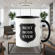 A melhor caneca de café do chefe nunca. Caneca legal para o grande chefe dos mundos. Logotipo da apreciação do dia do chefe. Emblema preto e branco do protetor com citações personalizable.