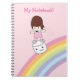 Design legal e colorido dos desenhos animados Lesley que surfa abaixo de um arco-íris em um Marshmallow irritado! Design engraçado e bonito do kawaii. Customizável! Personalize com sua própria mensagem!